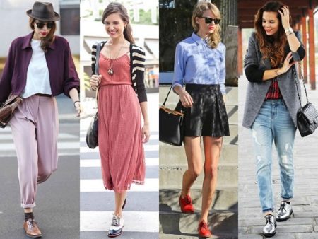 The English style in shoes has long established itself and continues to be fashionable. Oxfords are a great choice for those who like convenience. Black and white models are still at the peak of popularity, but the assortment has long been expanded and you can choose oxfords in different colors, with or without patterns. They look good in combination with short pants or a skirt.