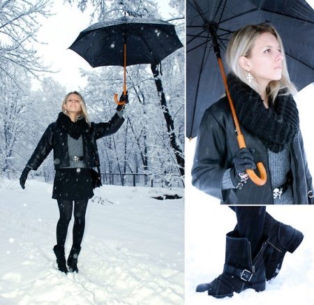 On snowy days, it’s not so easy to force yourself to go outside, especially in uncomfortable shoes. For cold pores, a wide selection of boots is offered. The leaders among them are models with a sharp toe, on a stable sole, on a wedge, military style.