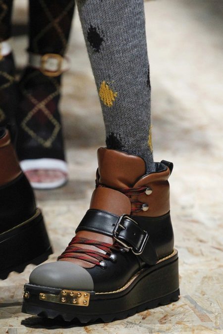 This is an unusual combination of colors, and rich decor, and material. Elements such as zippers, rivets, locks will be popular. Many people prefer tractor-soled boots, but patent leather and chelsea will be the most popular.
