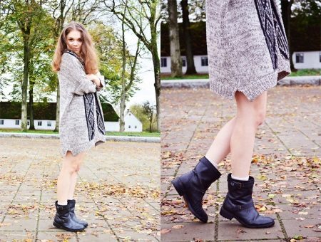 Skirts of different lengths, sheath dresses and flying romantic dresses look beautiful with short boots.