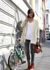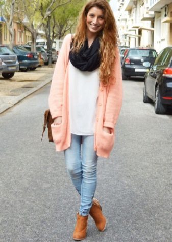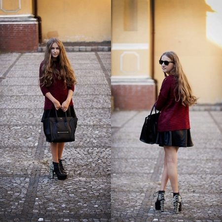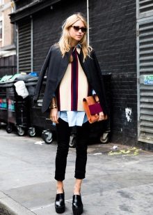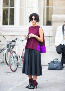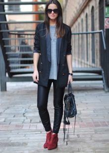 With wedge ankle boots, tight-fitting dresses and skirts to the knee or higher, skinny trousers or leggings perfectly harmonize. With lush clothes, they do not combine, as they visually shorten the figure.