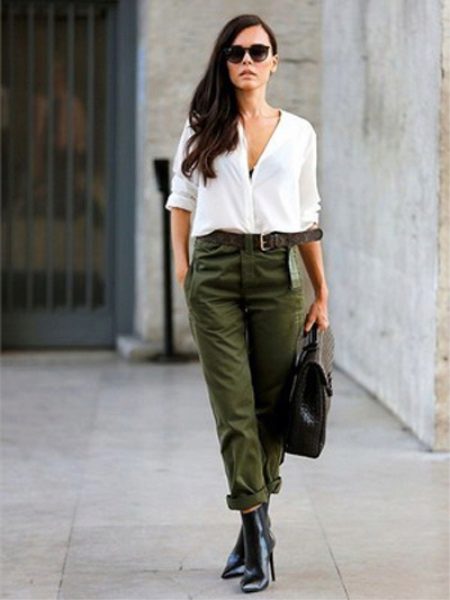 - A loose blouse with three-quarter sleeves and wide trousers, a slightly sloppy and loose look is complemented by elegant stiletto ankle boots. Shoes returns femininity and sexuality to the image, and voluminous trousers no longer look rude.