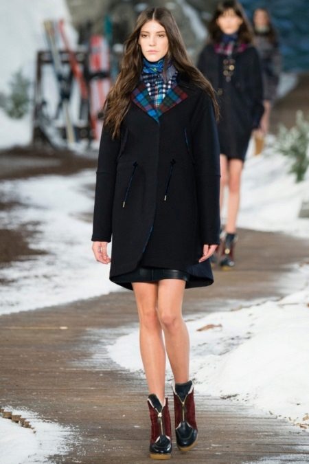 Cropped boots with tractor soles are an ideal option in the wardrobe of modern fashionistas, because everyone knows that today, the shorter the pants / jeans, the better. And when between the boots and trousers a thin strip of low, but bright, socks (selected, in accordance with the image) slips, this is considered the peak of perfection.