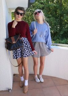Models with a wedge and heel, worn over woolen stockings above the knee, look pretty good, but you should know that this option suits only slender girls. Owners of curvaceous forms can combine knee-high knee-high socks and stylish knitted leggings with oxfords.