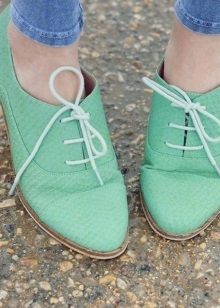 Oxfords without laces - A relatively new, unusual trend, which may not be as convenient as it seems at first glance.The fact is that for some girls with a full leg lift it can be uncomfortable and difficult to put on shoes made of thick leather on the leg.