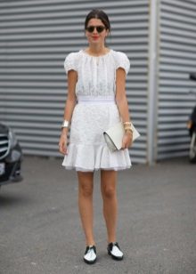 Different models of oxfords can be very harmoniously combined with dresses and skirts of different models. For example, monochromatic oxfords with a heel in a monophonic version, as well as restrained models with a flat sole, are perfect for a classic pencil skirt.