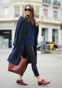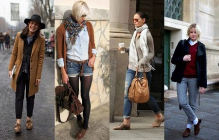 Warm and winter models are great for looks with warm outerwear. A combination of oxford shoes and any coat in a classic style looks advantageous, mainly it is a straight cut and medium length. In addition, oxfords pretty well combined with fur coats.