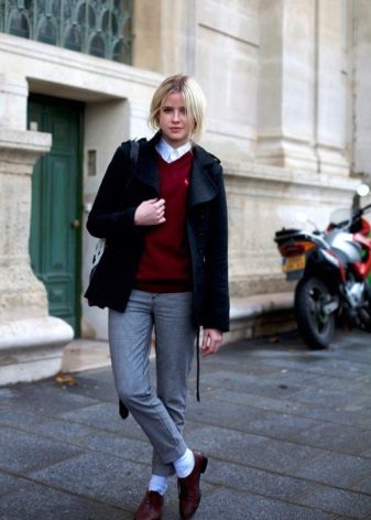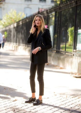 But the most familiar and harmonious combination with oxfords is made up of trousers of different models - whether it is skinny jeans or a classic straight-cut model with arrows. And to create a casual look in a business style suitable for an office dress code, you should choose a stylish classic suit for this shoe model.