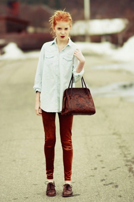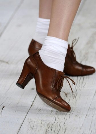 The same can be said about classic brown oxfords and its dark shades. This option looks most successful on girls with dark skin, emphasizing its shade favorably.
