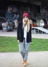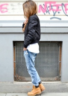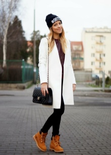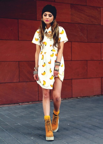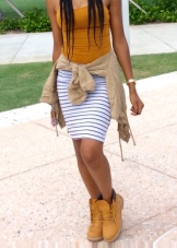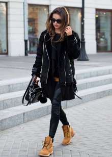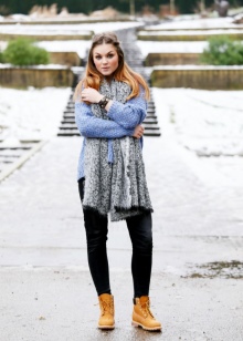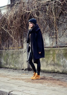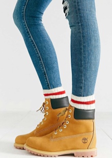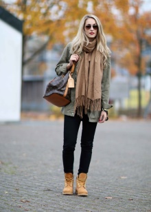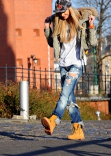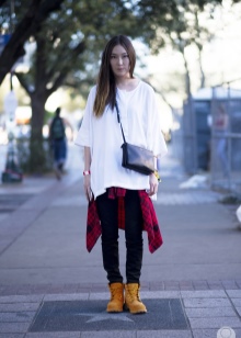 As accessories, belts, bags, scarves and gloves of the same color as timberlands are suitable. A cap of a rainbow orange hue will complement the summer street look and will attract attention to its owner.