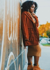 In cooler seasons, you can wear orange boots with a leather jacket, a parka or a thin coat, and in winter and late autumn with a sheepskin coat or even a fur coat.