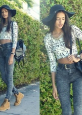 - Jeans with a cropped t-shirt or plain shirt. In the cold season, just put on a light jacket or warm coat. This image is suitable for those who love simplicity and minimalism.