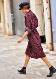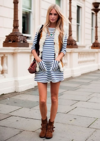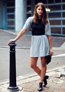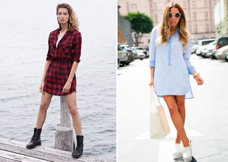 In this case, it is worth paying attention to such styles of dresses as polo, as well as products of A-silhouette mini length. They will ideally be combined with massive boots on a flat sole of light shades.Similar dresses can also be fitted or have a straight silhouette.