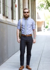 Female models can be worn with cropped trousers, breeches and capris. It is recommended that you wear loose shirts or fitted blouses. Deserts look harmonious with men's straight trousers and fitted jackets. Especially spectacular red shoes will be combined with dark blue and gray clothes.