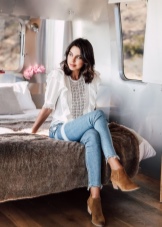 A cream jacket, skinny jeans and a trench coat will look feminine and elegant. You can easily create a romantic look with a gray straight coat and charming heeled boots.