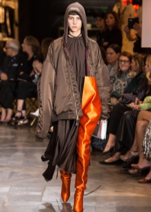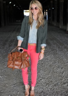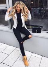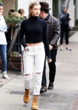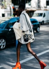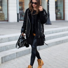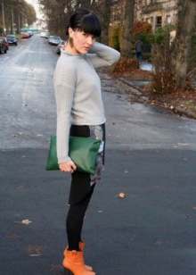 Fashionable shoes in spectacular colors can fit into almost any outfit. The most successful combinations will be with blue jeans (skinny or boyfriends), as well as denim breeches and shorts. Upstairs you can wear a T-shirt, turtleneck or sweater. In the cooler season, warm leggings with a parka or jacket will look spectacular with timberlands.