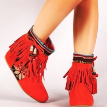In warm spring or hot summer, a fashionista can wear light or open boots of bold colors.