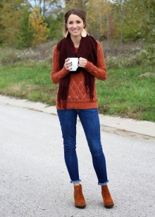 - leggings or leggings, especially when it comes to red boots with fur;