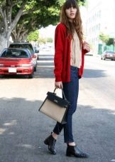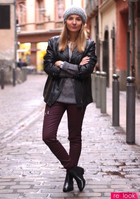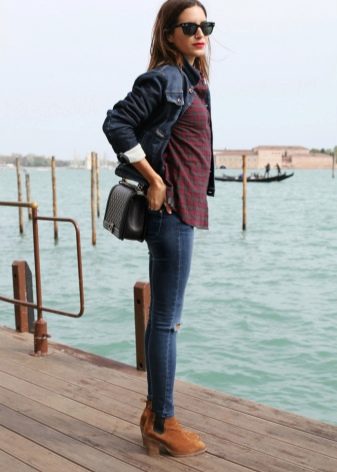 Trendy chelsea boots can be worn with trousers, but it makes no sense to hide them under long models. Good combinations are obtained with elegant shortened options. Bright and attractive skinny will look good.