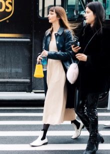 Some people like to resort to very bold fashion experiments and combine chelsea with light dresses made of airy fabrics or sundresses. For images of these types, it is best to choose textile or varnish pairs.