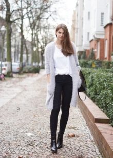 - Gray things go wonderfully with black suede chelsea. If the shoes themselves are gray, things are suitable for both light and dark colors. The main thing is to ensure that the outfit does not merge into one gray spot.
