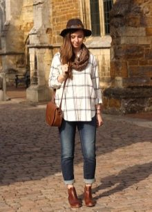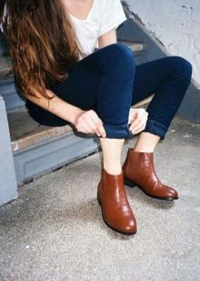 - Brown or black boots will look in tandem with brown jeans in a masculine look. Such chelsea, like sand, red or orange, can easily be combined with many things.