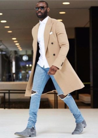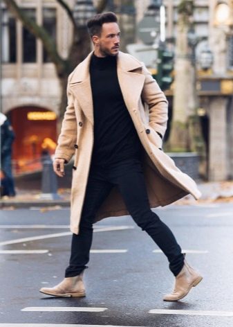 In the autumn or winter seasons, fashionistas, of course, put on outerwear, which must be correctly combined with chelsea boots. So, in winter or autumn they can be worn with such things: