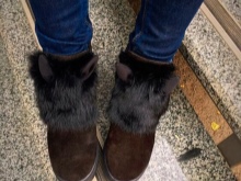 - black boots with gray or white fur;