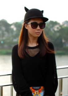 An outfit with interesting shoes with ears can be complemented with a fashionable hat with a similar decor. Eared hats have been wildly popular lately. Knitwear will look no less impressive in the original image.