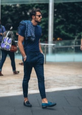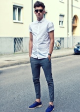 - A combination of white trousers, blue shoes, a blue shirt and a dark jacket will look bright and harmonious;
