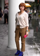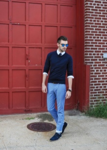 - With straight jeans or trousers in combination with blue shoes, pastel sweaters and sweaters will harmonize;