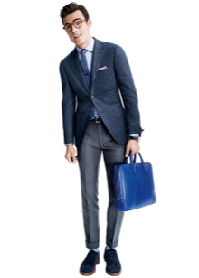 Blue shoes look great with bags and clutches of blue, gray, black and brown. Ladies can choose suede products for shoes with a similar texture. Men should emphasize a solid image with leather dark purses with a small handle.