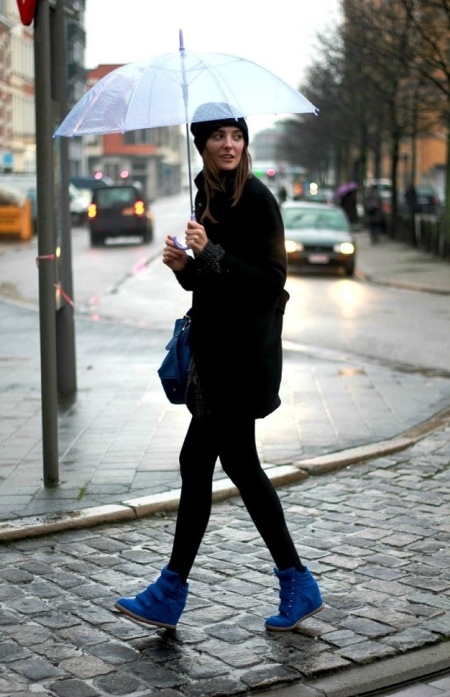 Blue shoes look very impressive against a snowy winter. For the frosty season, it is better to choose stylish models made of genuine leather with embossed or tread sole. Such shoe parts will provide excellent grip, which is so important in the winter season.