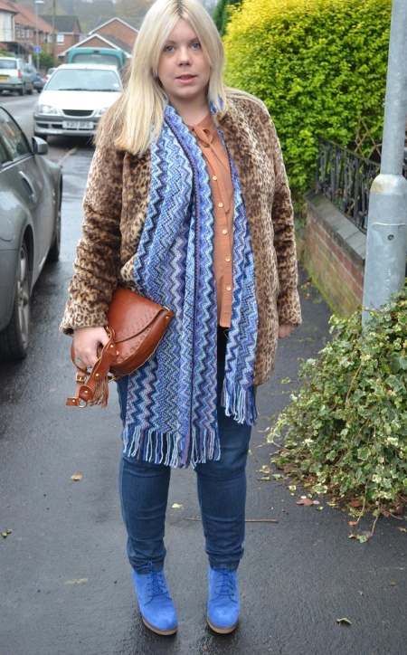 Synthetic or knitted accessories in blue, blue and white are perfect for the winter season. Fashionistas can decorate the outfit with cute scarves and hats with New Year or winter patterns. Men can be complemented with a strict black scarf and tight-fitting leather gloves.