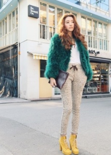 - Of outerwear, combined with yellow boots, a jacket-jacket or a sports down jacket is preferred, but yellow ankle boots will perfectly match a plain coat.