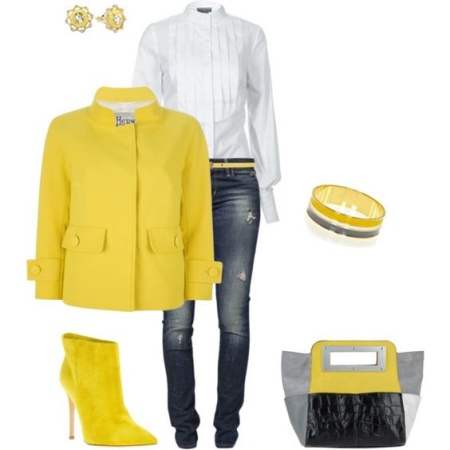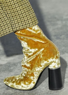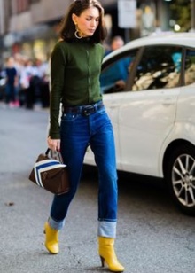 When the warm season comes, they can be replaced with mustard boots with high heels in combination with tight trousers and a blouse.For hot summers, yellow pumps in combination with a wardrobe of neutral colors or bright shades of blue will be an excellent solution.