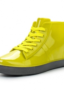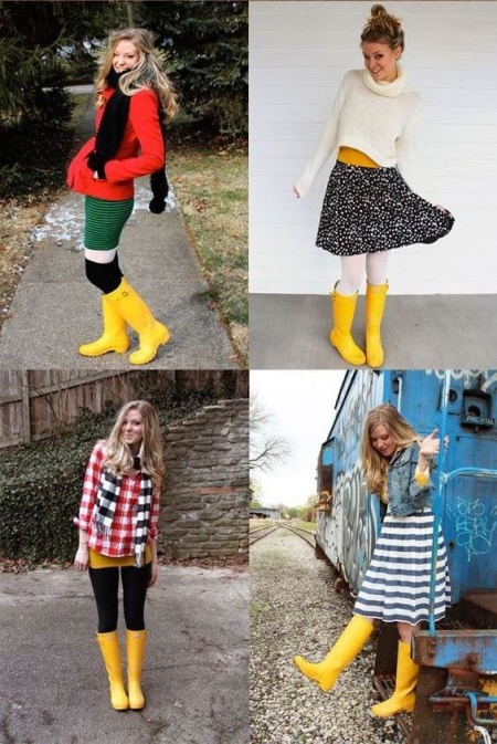 It may even be fashionable to wear bright yellow rubber boots if you wear them in combination with denim shorts or a flared electric-colored skirt.