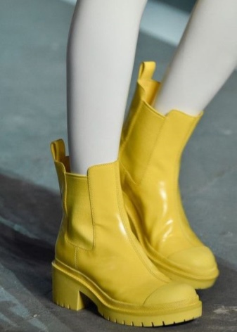 - A drop of optimism is necessary for everyone - it will not harm the wardrobe either. You should try on shoes of the solar gamut - an excellent mood, safety and comfort in any weather are guaranteed! Women's yellow boots of warm sunny tones can become the main accent in the wardrobe, and can be part of a bright image. The main thing is that they continue to remain in trend and delight with their diversity.