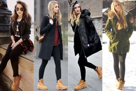 - Women's boots in the style of timberlands are considered everyday, universal shoes, they can go for a walk, for shopping and other events. Creating a fashionable image with them is quite simple.