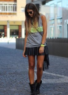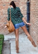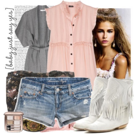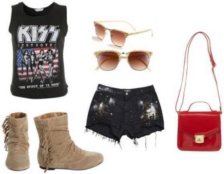 Stylish summer boots go well with many wardrobe items. Most of all they are appropriate with skinny pants, short shorts and breeches. A similar ensemble will successfully complement a T-shirt (or a spacious T-shirt) and a vest. Jeans can also be worn with summer boots, while tucking their hem.