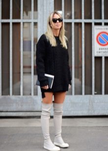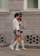 However, the glamorous young ladies may well combine them with lush fluffy skirts and light dresses. At the same time, it is preferable to choose high shoes in light shades. And do not forget: the higher the boot heel, the shorter the skirt should be.