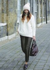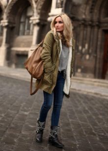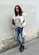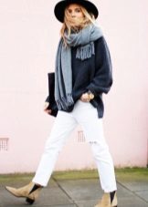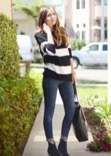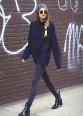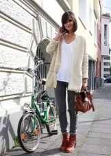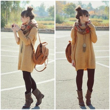 Long sweaters and knitted sweaters perfectly complement fashionable shoes with a short boot. Faithful "comrades" in this image will be massive accessories made of wood or plastic.