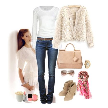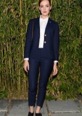 - A white romantic dress with a jacket a la hussar tunic already looks spectacular. Deep blue suede shoes add depth and accents. And sunglasses remind that this bow is hyper-modern.