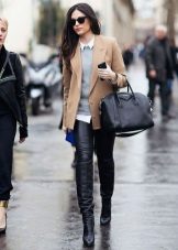 - Leather stocking boots. This model always looks sexy, but right now it is more popular than ever. Do not deny yourself the pleasure of putting on leg-fitting shoes in order to catch the admiring glances of passers-by.