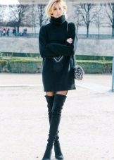 High boots are the best choice for girls with lush hips. Such products make the leg already, then, they always look very impressive. Slender young ladies can also wear high-top shoes, but their design should be more “loose”.