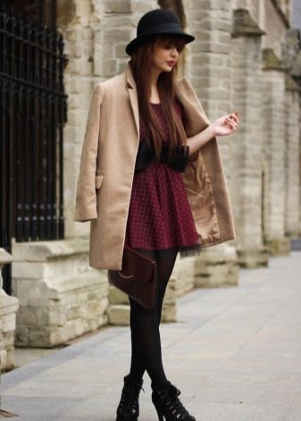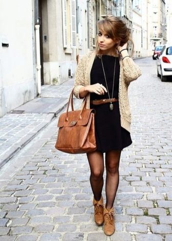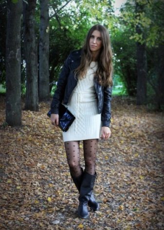 Dress with boots - one of the most fashionable and daring combinations. If the weather allows, you can wear this kit without pantyhose. It looks very fresh and youthful. Shoes can be both aggressive and feminine prints of your choice.