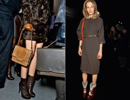 Autumn boots work well with jeans or trousers. It is better that they be narrow, because in the cold season there is so much slush. Despite the invasion of flares, the tabernacles still help our fashionistas in the rainy season.