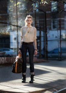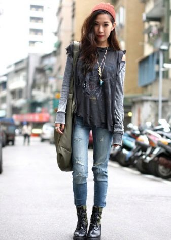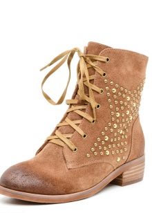 The army style is no less popular among girls. This season, bulky army boots, represented in women's collections, have become much more elegant. However, they did not lose their brutality. Army-style shoes are distinguished by the presence of lacing in front, a rounded toe and a low rectangular heel.