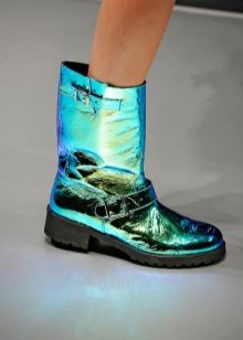 Winter boots are popular in three directions at once - “glam rock”, “grunge” and “military”. They are large massive shoes with many straps, chains, zippers and spikes.
