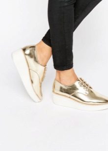 These shoes are as popular as all the previous ones. They are made of genuine leather, have a lacing and a rounded toe. Heel is not provided in this model. If he is, then no more than two centimeters. Skinny pants with an open ankle are suitable for this shoe. This will emphasize the harmony of the legs. Oxfords are appropriate when creating an office image. In this case, they need to be combined with a skirt and a blouse. For everyday life, such shoes are also suitable.